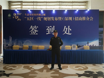 "五區(qū)一線"規(guī)劃發(fā)布暨(深圳)招商推介會我司鐵保宏泰保安公司出動數(shù)十名保安人員負責此次活動...
