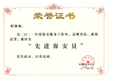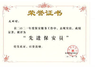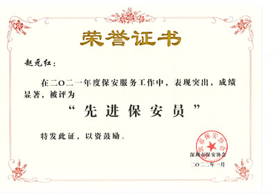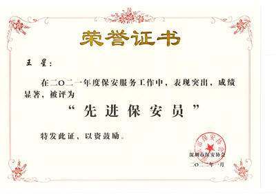 深圳市鐵保宏泰保安服務(wù)有限公司多名安保護(hù)衛(wèi)人員被深圳市保安協(xié)會熱評為“先進(jìn)保安員”。