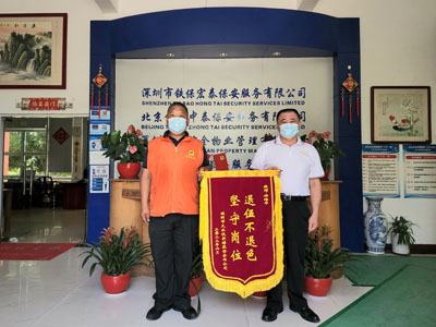 2022年6月24日,龍華區(qū)福城街道領(lǐng)導(dǎo)黃燕同志等領(lǐng)導(dǎo)對我司(鐵保宏泰保安公司)派駐疫情卡口值班保安員鐘培華同志給予高度的表揚和認可,并為其頒發(fā)了獎金和慰問品以此予以鼓勵。同時強調(diào)全體疫情工作人員要向鐘培華同志學(xué)習(xí)盡職盡責(zé),落實責(zé)任,堅決做好疫情防控工作。