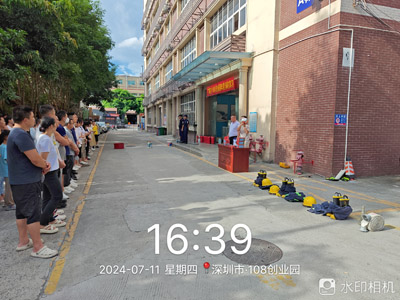 我司鐵保宏泰深圳保安公司駐點廣榮發(fā)108創(chuàng)業(yè)園年度消防演習!