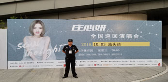 2018莊心妍Saw The Light 全國巡回演唱會-汕頭站,超強配置,巔峰呈獻,帶您領(lǐng)略酣暢淋漓的視聽體驗,合唱難忘的經(jīng)典情歌,共享一場非凡的音樂盛宴。10月3日,汕頭大學體育館隆重舉行。我司派駐安保人員110人參加護衛(wèi)活動。