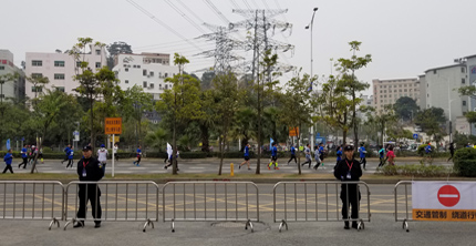 2018年12月30日7:30,2018深圳寶安國際馬拉松賽鳴槍起跑,2018年深圳寶安馬拉松賽迎來了第三個生日,同時也是2018年 “奔跑中國”馬拉松系列賽的收官之戰(zhàn)。我司鐵保宏泰保安公司共出動1000余名安保護衛(wèi)人員為此次寶安國際馬拉松賽助力,執(zhí)勤人員認真負責,始終保持良好的執(zhí)勤姿態(tài)。