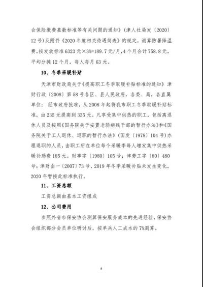 天津市保安協(xié)會發(fā)布《2020年度天津市保安服務(wù)普通保安員法定最低成本標(biāo)準(zhǔn)測算表》及編制說明。